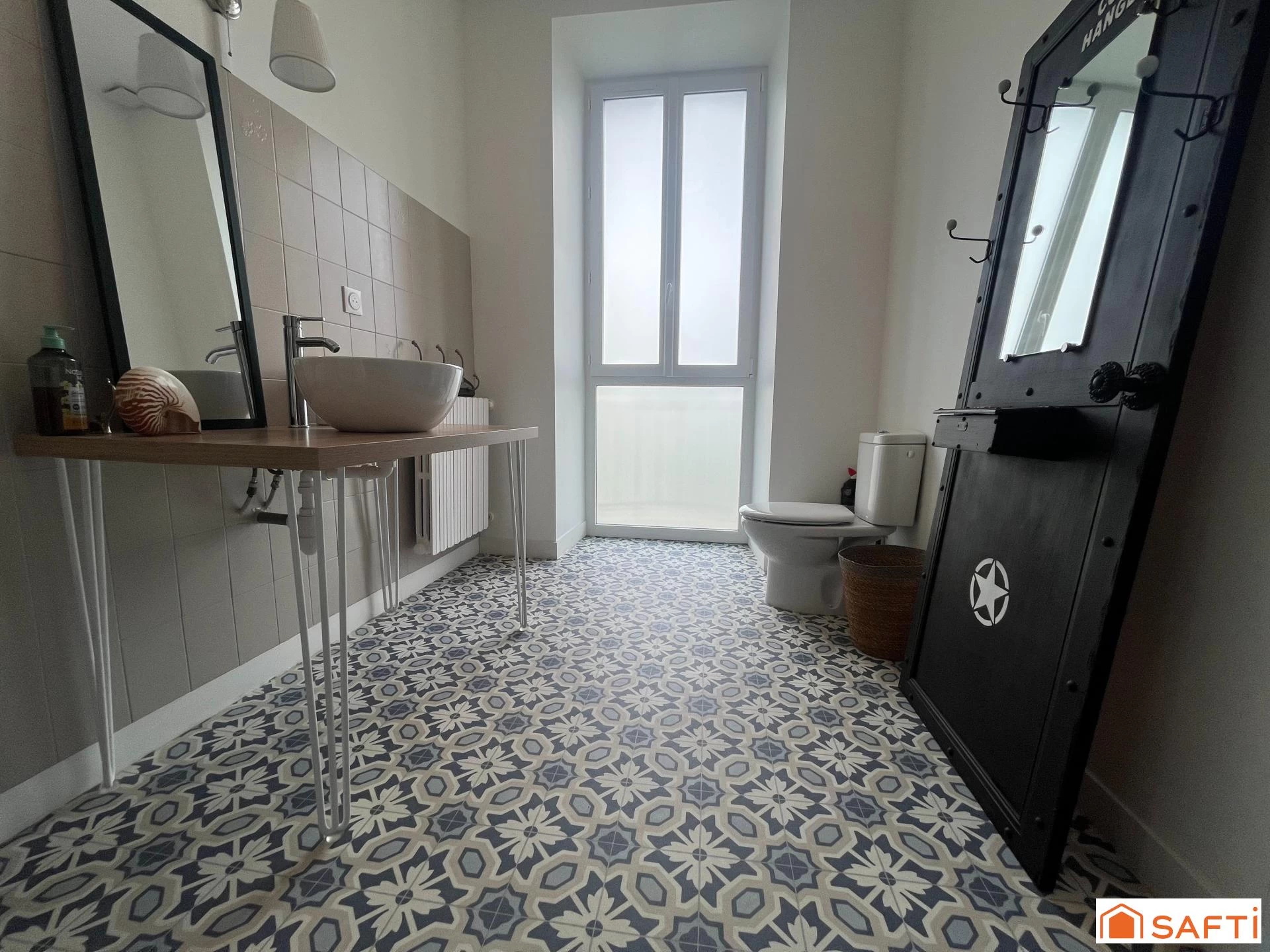 Commençons par ce vaste hall d' entrée, avec ses parquets d'époques menant à un salon / séjour chaleureux avec sa lumière traversante, une cuisine aménagée et équipée fonctionnelle avec son ilot central donnant sur le jardin avec son puit, une grande salle d'eau avec un espace de rangement et un wc indépendant.