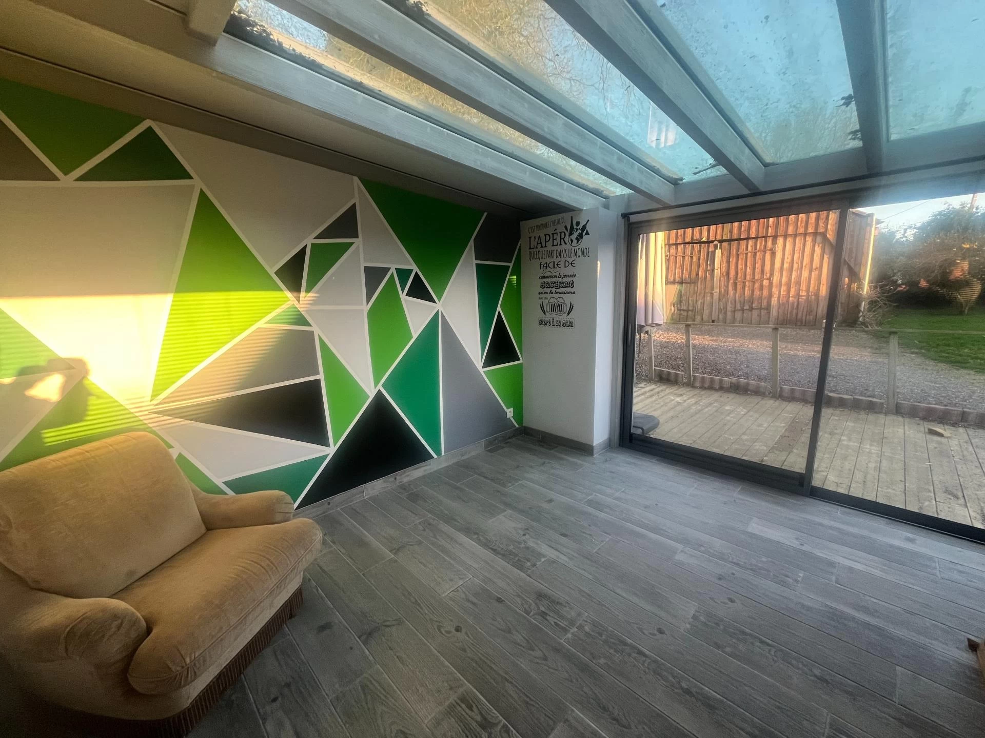 À l'extérieur, le jardin s'accompagne d'un hangar de 60 m² et d'une cour pour le stationnement.